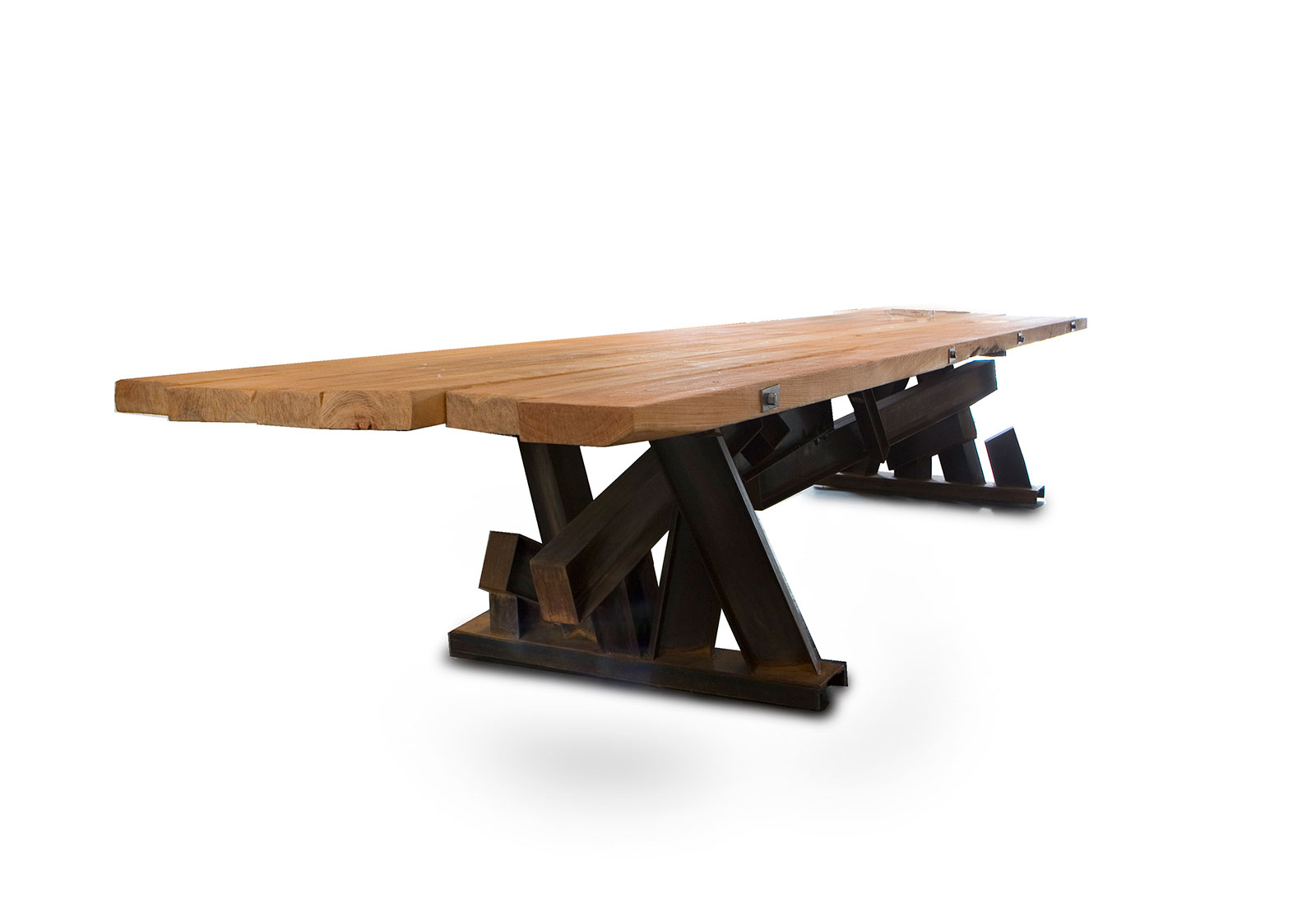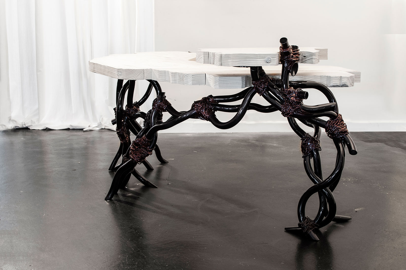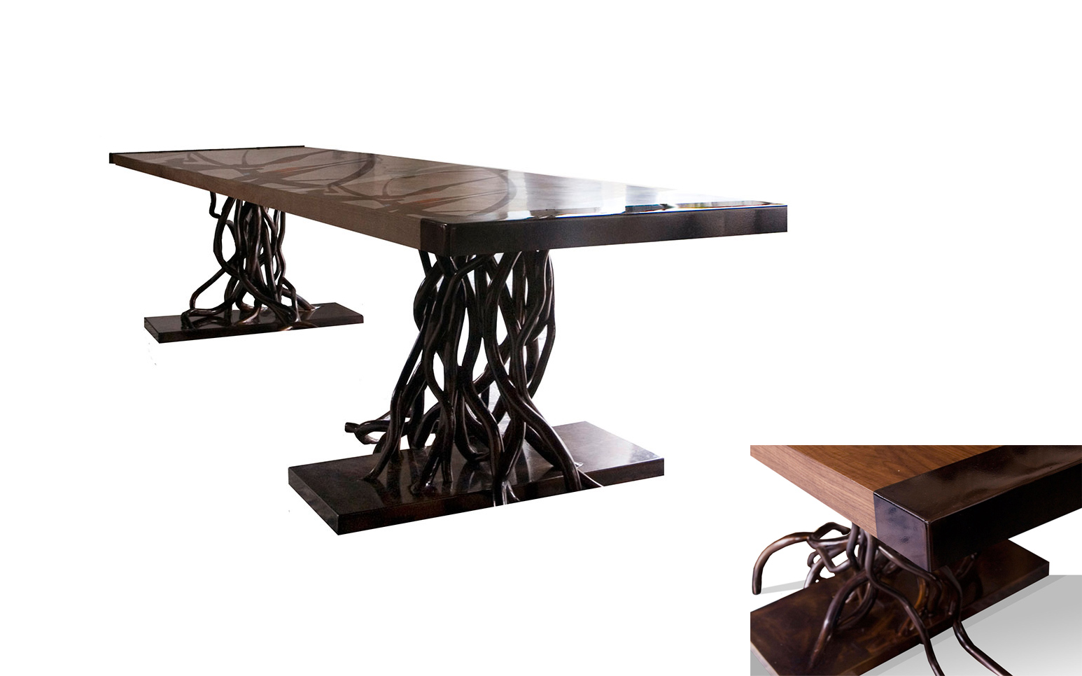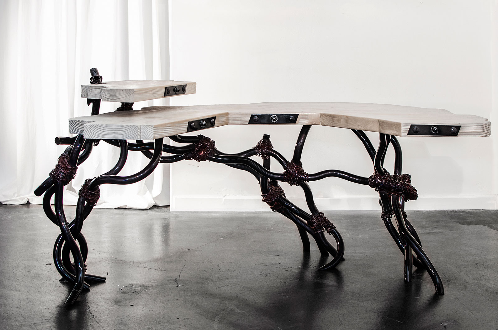 Steel Twisted Root 2 Tier Table with Bass Wood Top
