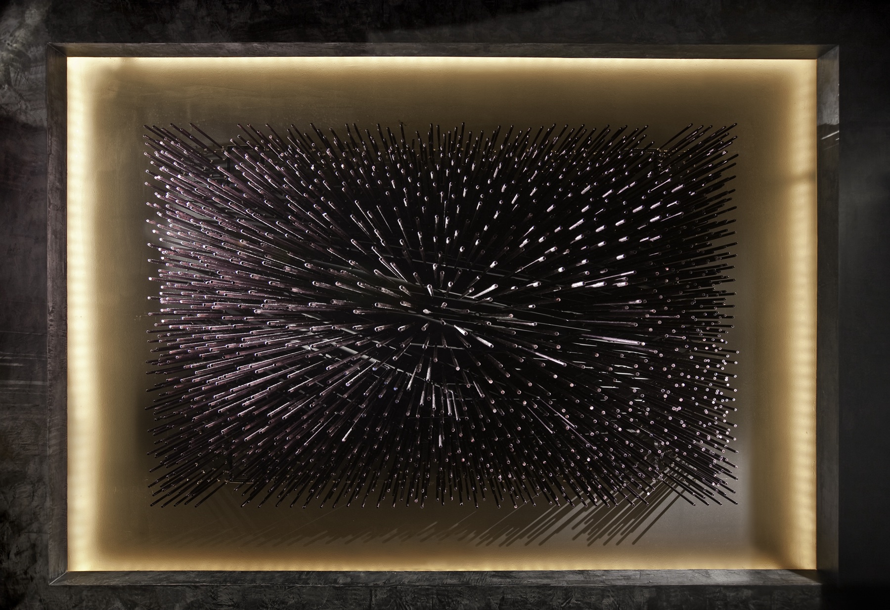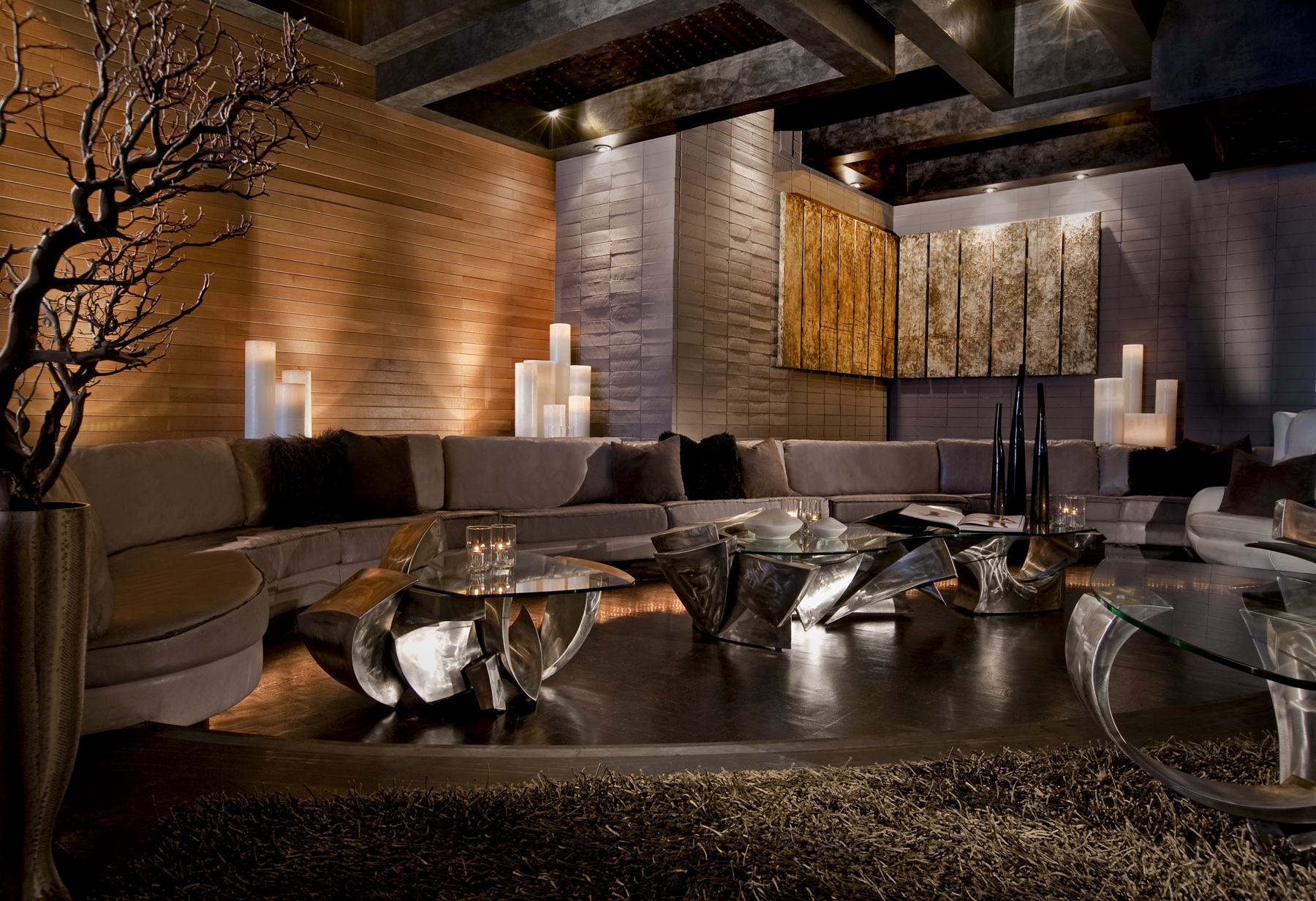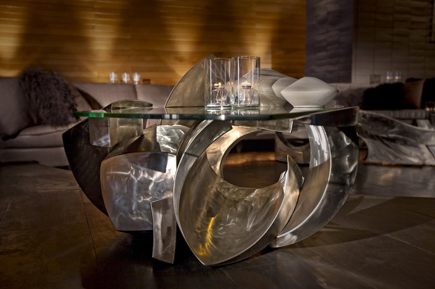 My House Los Angeles Client : Dodd Mitchell Design Agency: Dodd Mitchell Design Brown & Trowbridge Stainless Steel & Glass Table Stainless Steel Pin Ceiling Sculpture